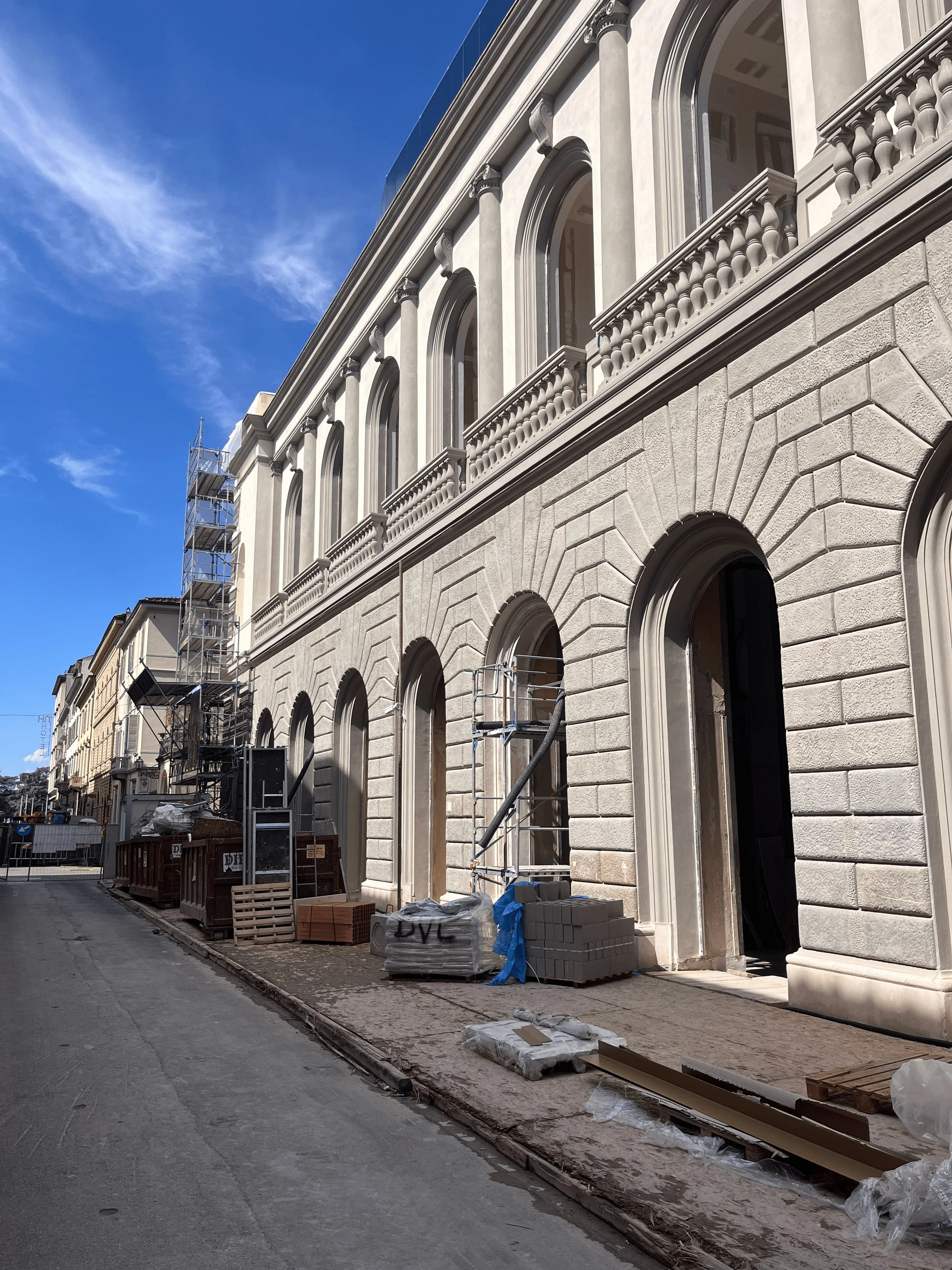 Specifically, in the faux rusticated band, made to imitate sandstone, the silicate finishing was executed with precise chromatic and textural modulation to recreate the visual effect of natural stone, enhancing the plasticity and articulation of the simulated blocks.