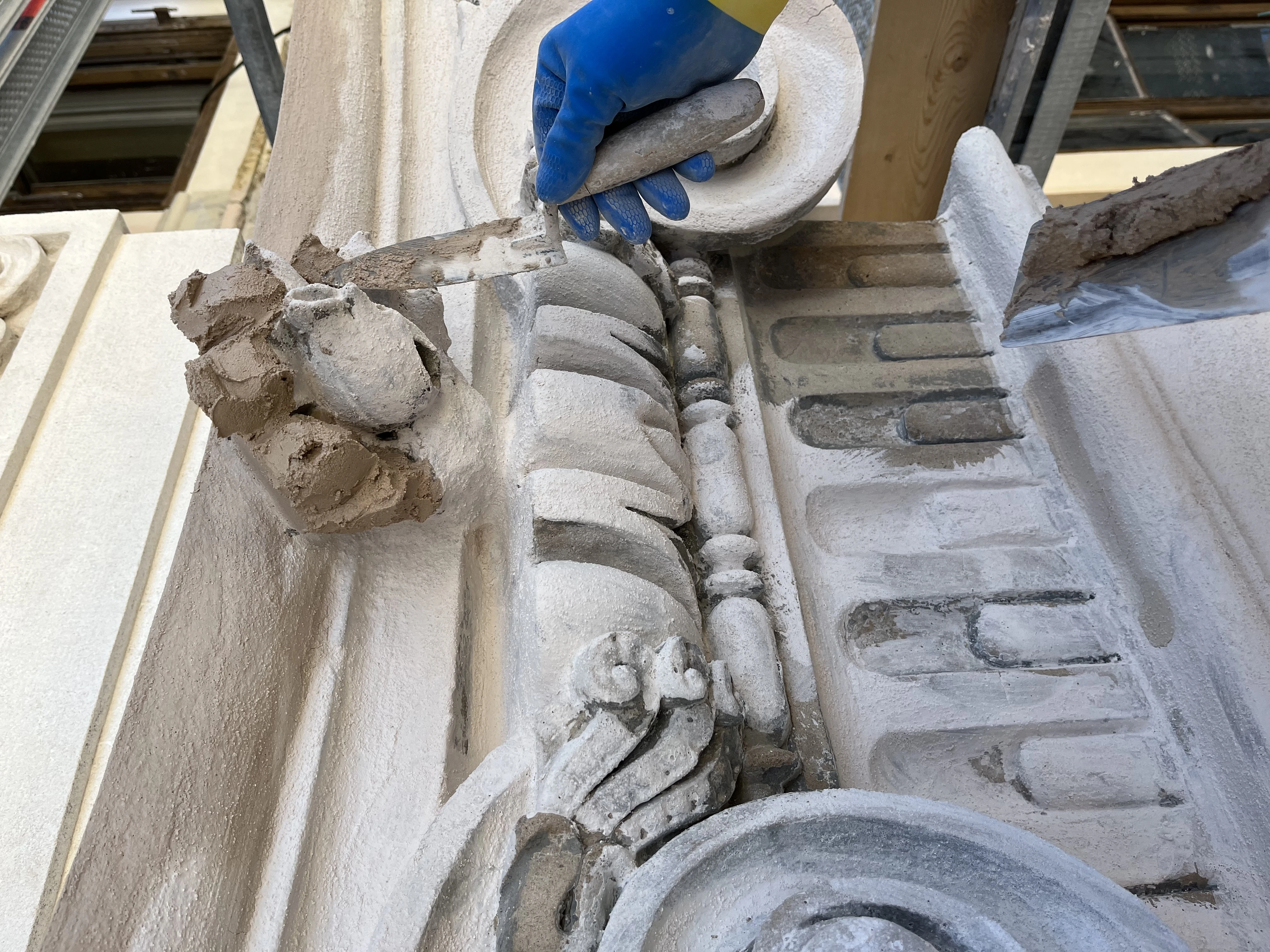 - Stuccatura delle fessurazioni e lacune degli elementi mediante l’utilizzo di una malta con granulometria e colore simile all’originale.