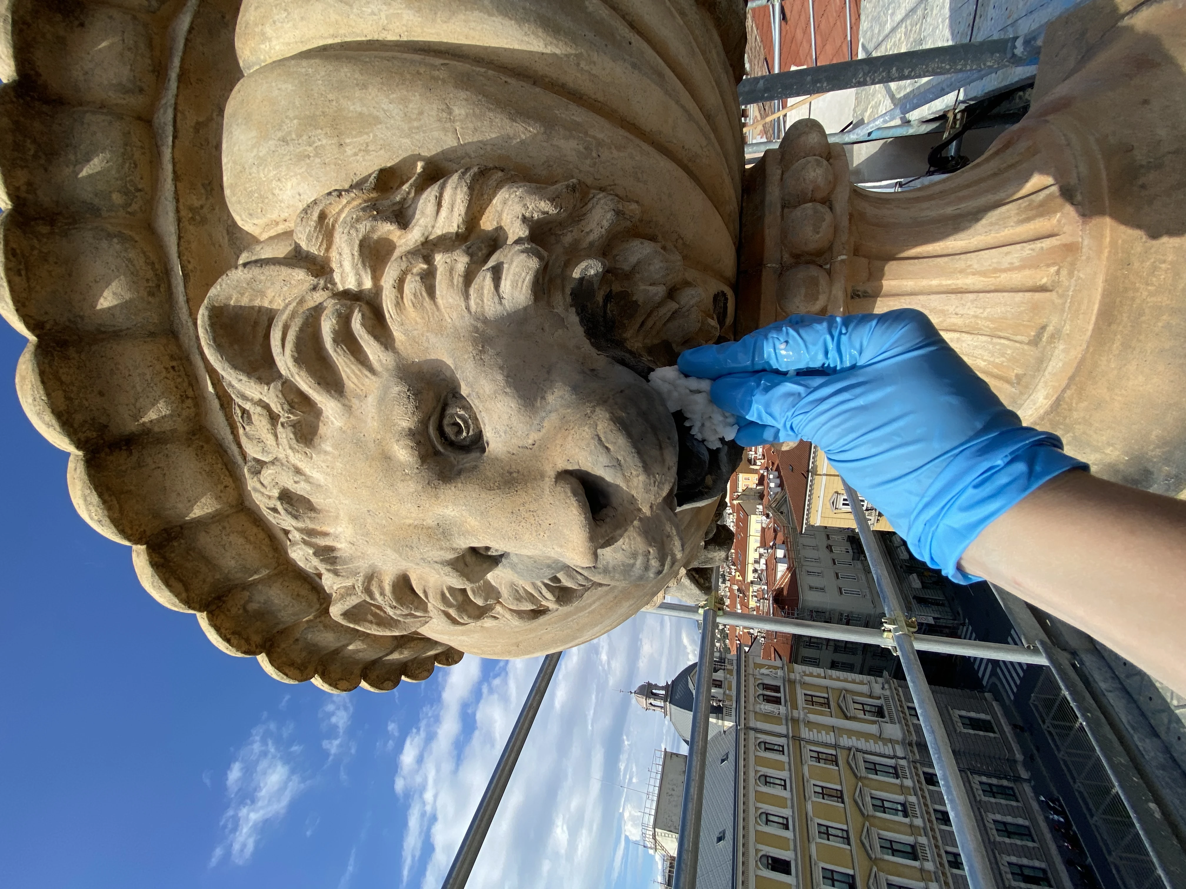 - Pulitura degli elementi lapidei mediante applicazione di prodott